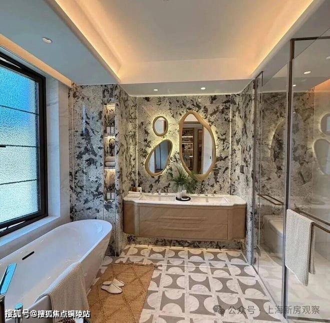 社区内设有上海风情的“三院”、海派精奢的三花园,让优雅的生活氛围随之铺展开来。下沉庭院整体长约18米,进深约9.5米,庭院的上下景观通过水帘相连通,中间结合有着层层叠水的水景,搭配水晶砖的景墙,将品质感拉满。