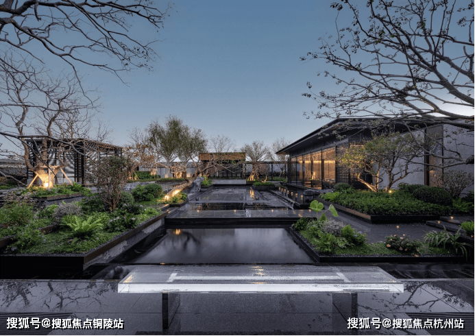 又比如,项目延续了张园“引水入园”的理念,将长200m近1000m²的水系覆盖到整个社区内。水景形态各异,有中心静水、三层跌水、点状涌泉、立面叠瀑、弧形流水五大不同呈现方式。水系的引入,让整个社区彻底灵动飘逸了起来。