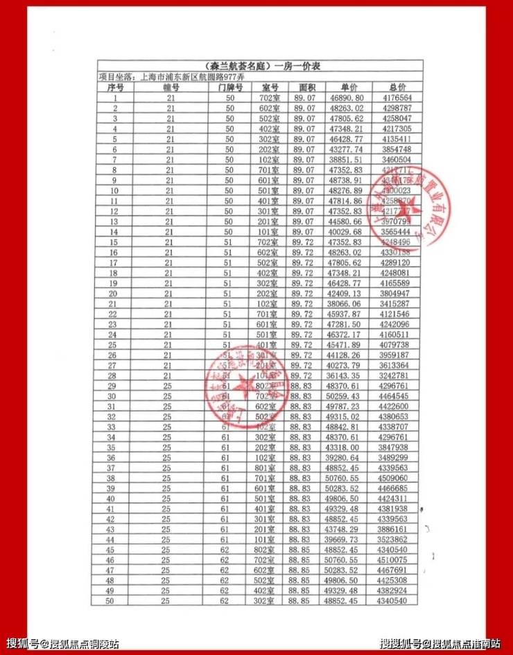 一房一价表: