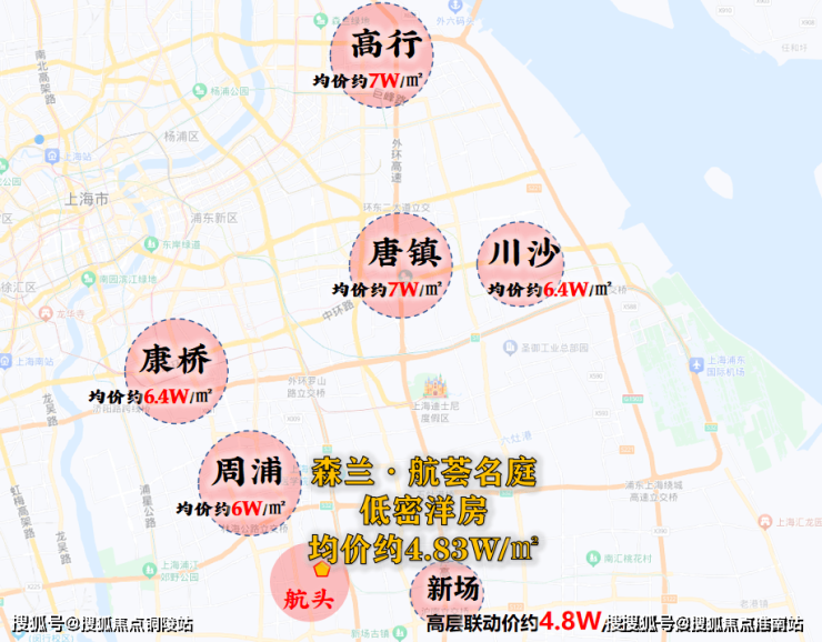 对于浦西来说“4”字头新盘不足为奇,可在浦东就显得尤为珍贵,板块均价基本需要6-7万/㎡左右,即便是同维度新场,高层产品的新房联动价都已经4.8万/㎡。
