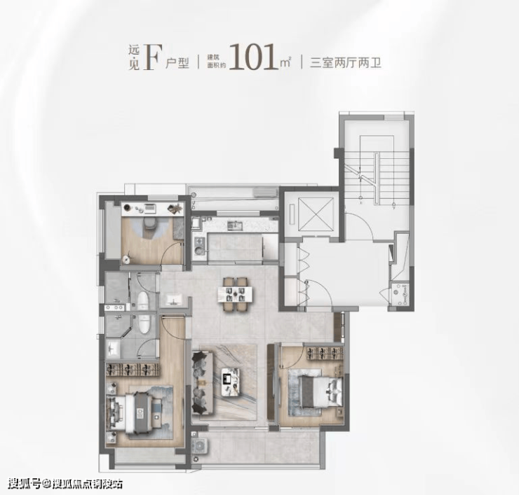 建面约101㎡的F和G户型都是市面上备受认可的飞机经典款户型。