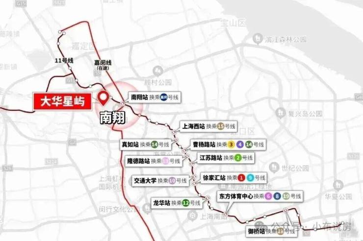 作为嘉定对接市区的“桥头堡”,物理距离最近,通勤时间可控且稳定。地铁11号线串联徐家汇、徐汇滨江、前滩等核心区,自驾通过嘉闵高架、沪嘉高速也能快速抵达市区与虹桥枢纽。