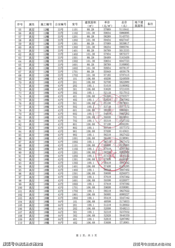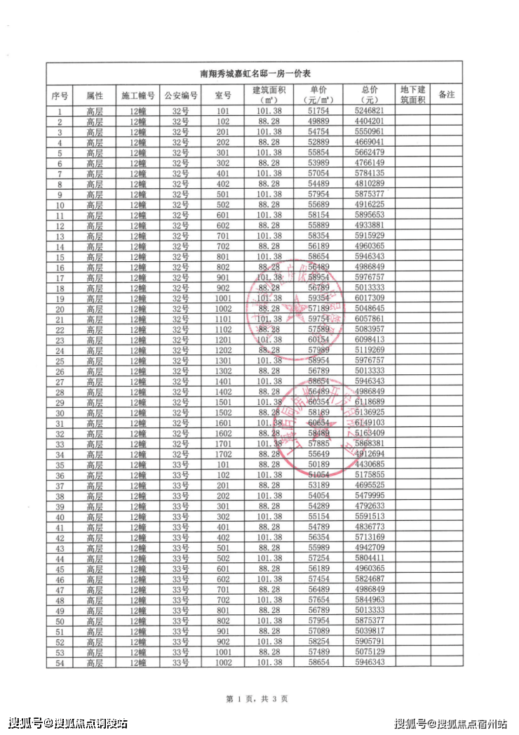 一房一价表: