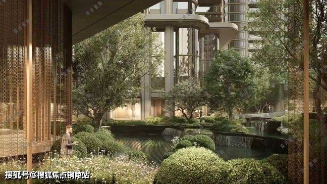 三层归家动线:从地面景观层到架空层,再到入户层,穿越绿植、光影与水景,步步进入私域。