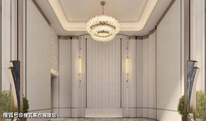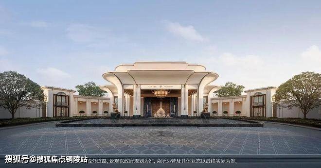 恢弘门头,豪气满满,宽约65米,14米挑高白玉兰造型穹顶,搭配水景喷泉营造归家仪式感。