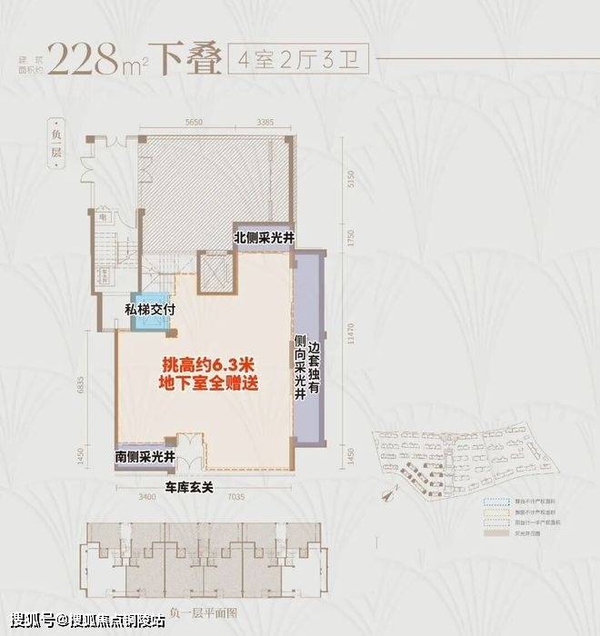 下叠户型地下单层面积约120㎡,层高达约6.3米,可以做双层使用,增加夹层后,地下空间可拓展至超200㎡,丰富的灵动空间足以满足业主的各类喜好!