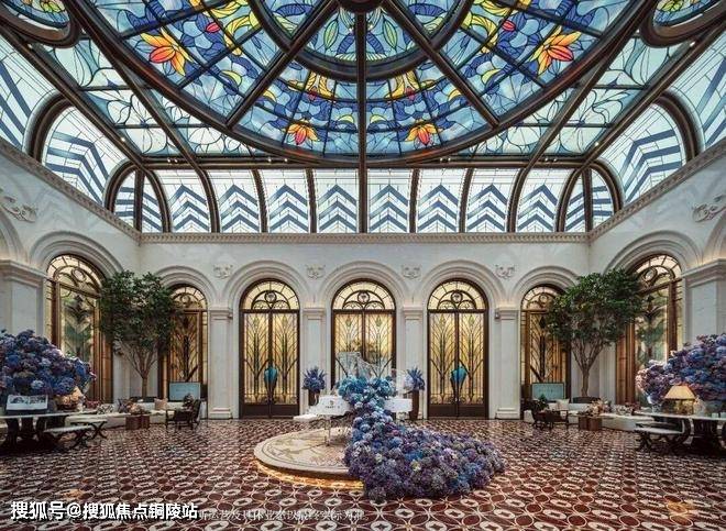 萃取东方色谱精粹,建发·海宸售楼处电话:400-9699-334✨【官方认证】✅✅✅甄选丝箔流金、东方雅铜,青釉奢蓝,以当代笔触晕染立面,令传统色彩在空间生长为永恒的诗意,「入户门头」形取和平饭店经典拱门,配以碧绿色天然石材门套、彩玻花窗,重现百年外滩门廊的尊崇仪式。