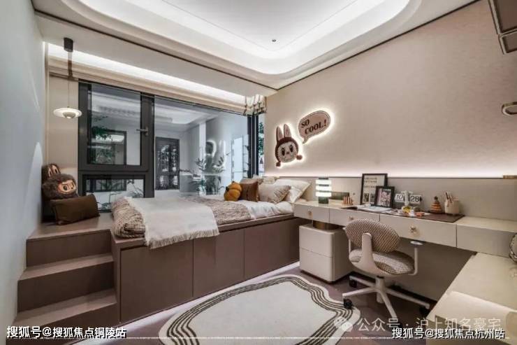 另外采用意大利 “大花白” 天然石材实现地墙满铺,双台盆与双镜柜的对称设计复刻五星酒店规制,美妆冰箱精准控温呵护护肤品,奢华至极!