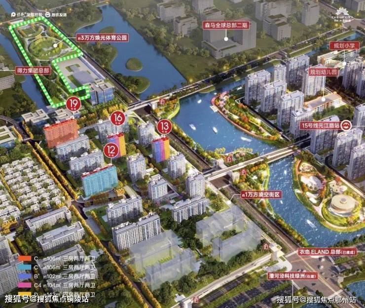 公园体系:10万㎡滨水公园,含中央景观花园、儿童游乐区、健身空间等