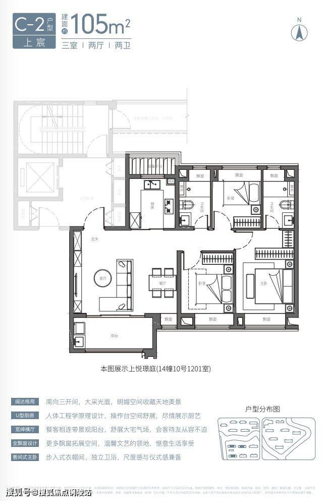 建面约105㎡3房2卫有两种风格(宽厅、竖厅),尤其是宽厅户型,设计格外惊艳。