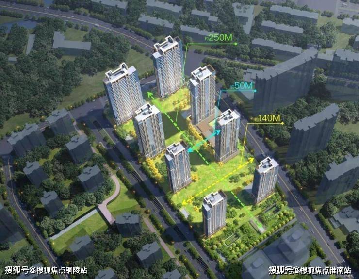 整体规划中,纵向中央绿轴超200米,横向景观轴约140米,南北楼间距约50-57米,东西间距也多超过44米。这不仅意味着更好的采光、通风与静谧性,更意味着每一扇窗外,迎接的不是邻家的墙壁,而是开阔的园景或远方的天空。