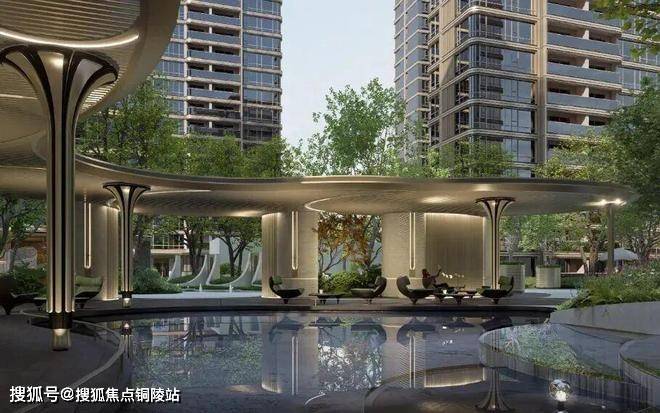 它也采用多见于豪宅新盘的风雨连廊,打造风雨无阻的归家体验的同时。风雨连廊的造型与景观巧妙呼应,别有意趣。