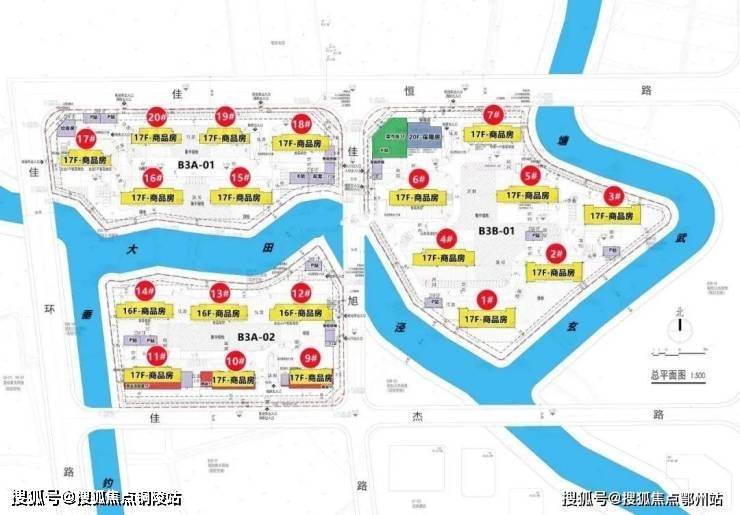 共20幢楼、16-17层的高层、标准层高约3米、架空层(约3.5米-4米)