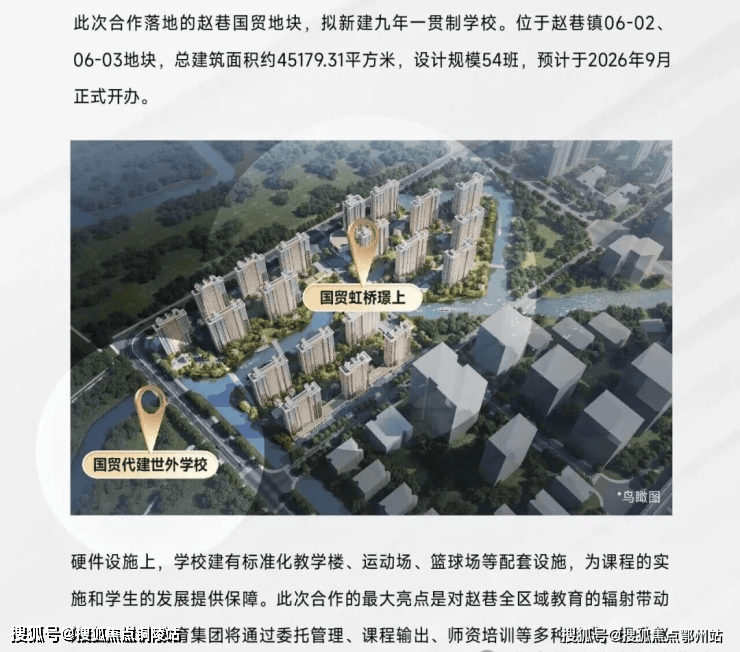 国贸为政府代建两所9年一贯制学校(小学+初中),紧邻项目西侧,一路之隔