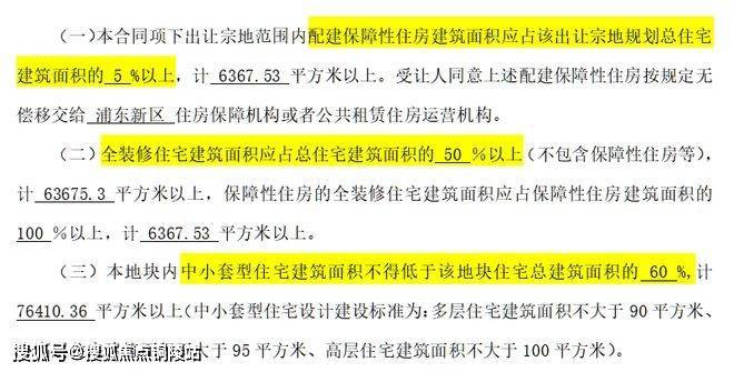 根据出让合同显示,地块容积率为2.0,限高60米,需配建5%以上的保障性住房,全装修比例50%以上,要求地块内中小套户型不得低于总住宅建筑面积的60%。