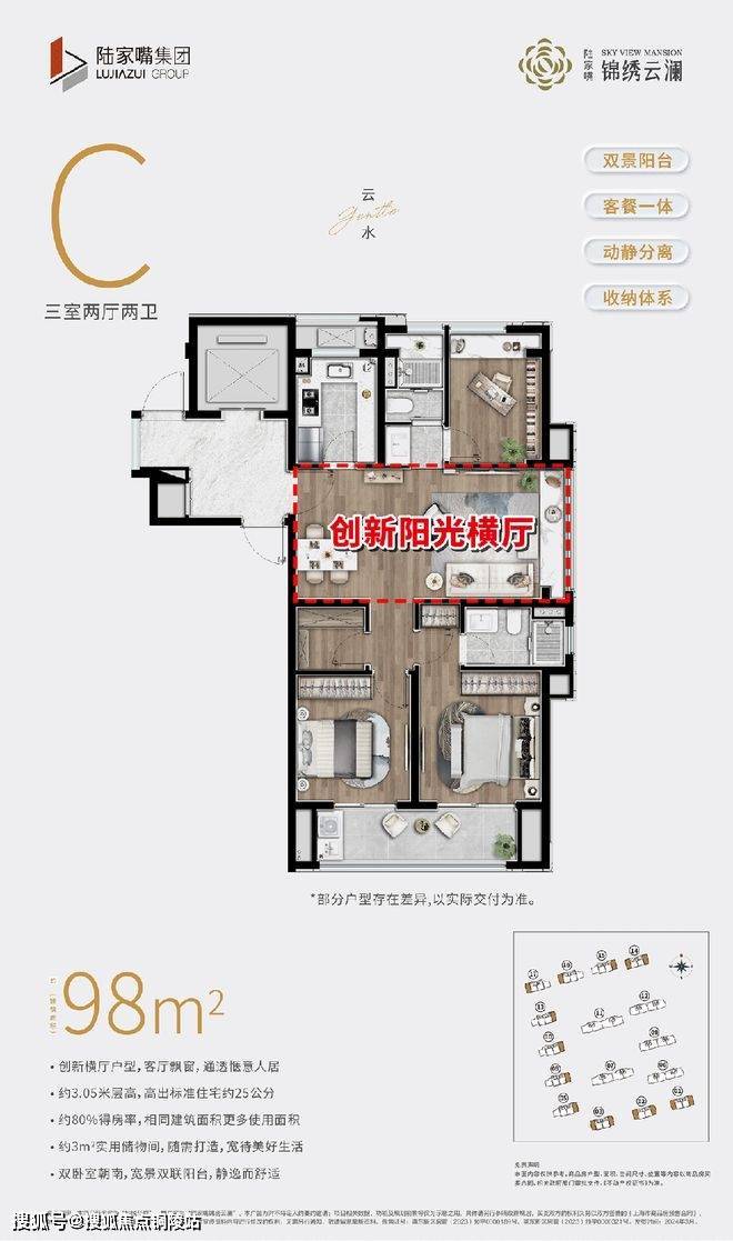 第二,创新横厅+双联阳台。