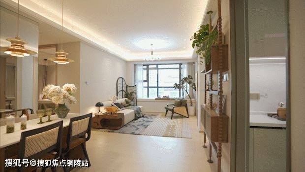 厨房餐厅以及客厅相连搭配大飘窗,不仅动线合理,还能保证整体室内的充足采光。