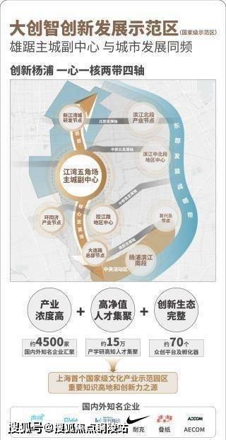 江湾五角场和新江湾城共同构建了大创智创新发展示范区。形成了世界级的产业集群,是“产业浓度、人才浓度、创新生态” 兼具的创新功能聚集区。