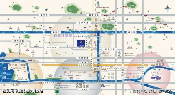 市域铁路:未来市域铁路嘉青松金线,将贯穿嘉定、青浦、松江和金山,届时白鹤将与青浦新城直接连通,并换乘轨交17号线和沪苏嘉城际线。