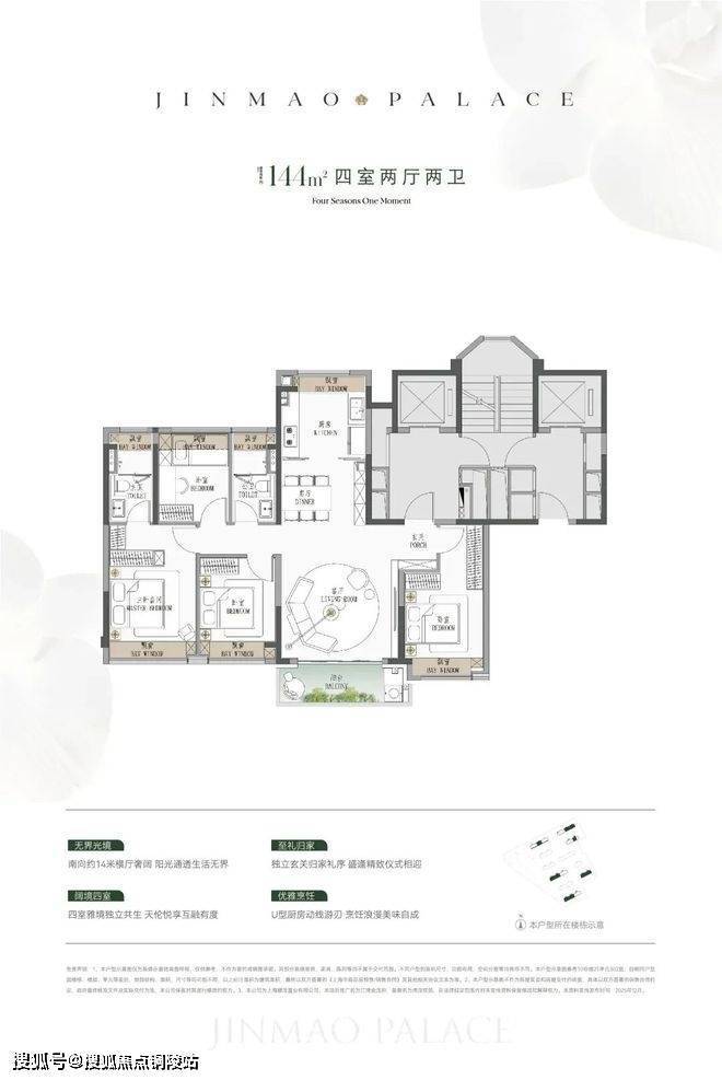 ● 建面约144㎡4房:同价格在杨浦只有百平米3房可选。