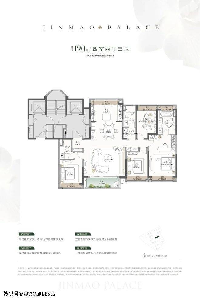 ● 建面约190㎡4房:楼王位置的顶奢大平层,同价位段在杨浦只能买到约120㎡3房!