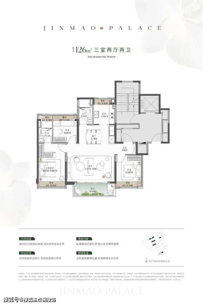 ● 建面约126㎡横厅3房:一步到位顶奢3房,全杨浦没有竞品。