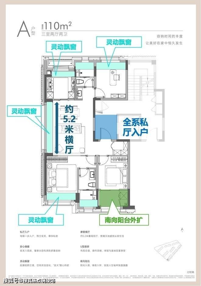 全屋私厅入户,电梯独享,归家仪式感拉满。玄关标配能装下一切的“800库”,收纳力爆炸。约5.2米的大宽厅,连接南向阳台,采光视野无敌。U型厨房、全明户型,每一寸空间都有效利用。