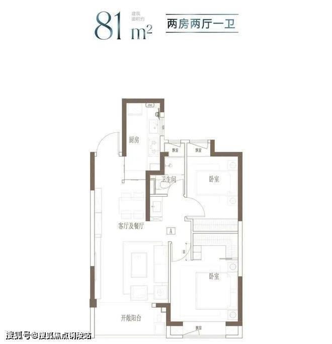 户型特点:小面积,低总价;2房朝南大面宽,舒适生活感受;卧室飘窗设计,释放更多公共空间。