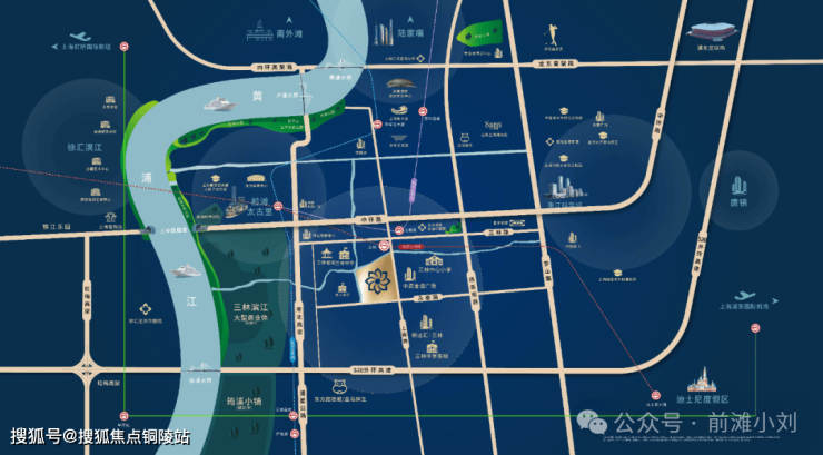 同时与规划中的三林滨江不同,前滩·东方湾一方面所在的片区是三林现有居住氛围更为成熟的片区,周边城市资源已然非常醇熟,比如中房金谊广场、新达汇·三林、上海三林中学、上海市育人中学等;