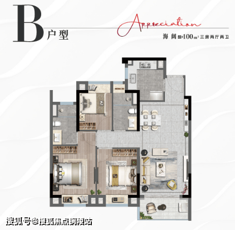 - 建面约125㎡三房:空间阔绰升级,动线流畅,动静分区合理,主卧套房设计,私密尊享,适配进阶改善需求;
