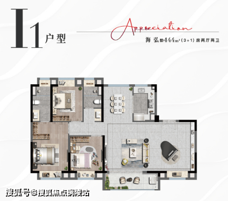 - 建面约144㎡三房:宽境格局,横厅连通宽景阳台,视野无遮挡,部分楼栋中高层可直面一线海景,主卧独立卫浴+衣帽间,改善质感拉满。