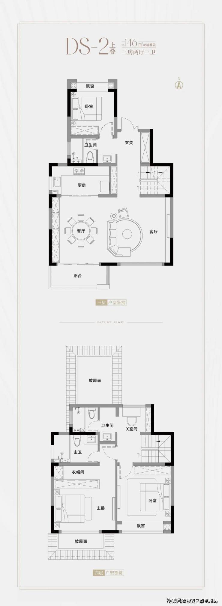 上叠建面约146㎡3房2厅3卫
