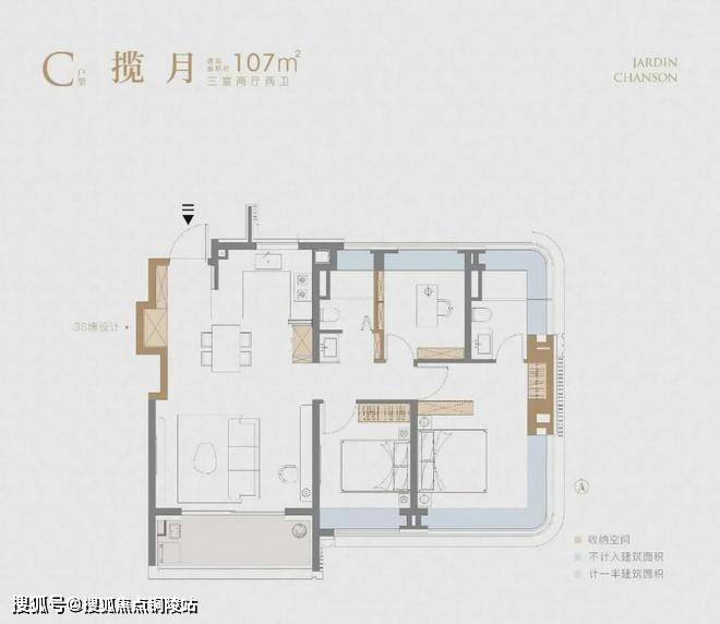 不夸张的讲,这个 建面约107㎡刷新了我对百平三房的新认知,据悉该户型或将申请专利,我认为实至名归!