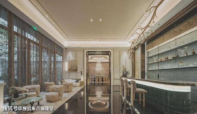 依托着超大落地窗的水吧花房,在宽敞的服务式空间中,以视觉美学与情感共鸣为设计语言,引入“一束雪梅”的艺术灯饰为视觉重点,打造五感沉浸的都市社交绿洲,于此交谈、休憩便能感受极具意境的轻松氛围。