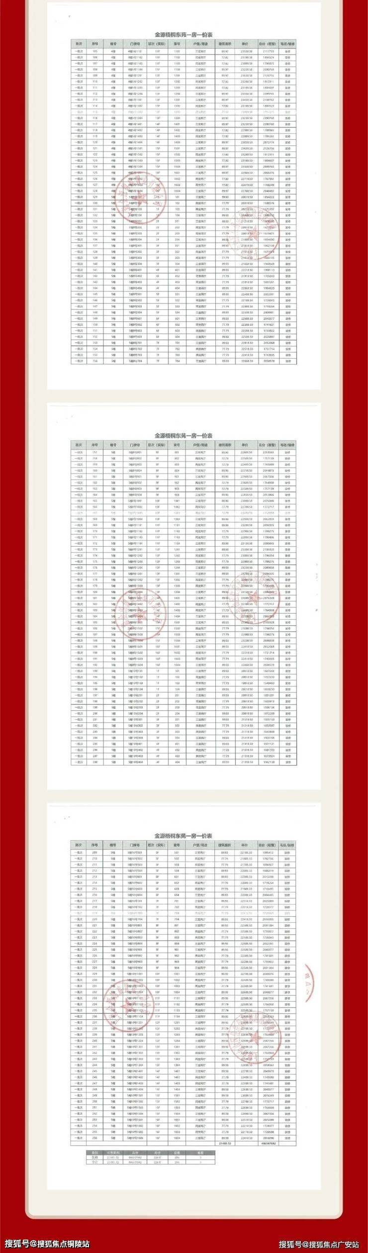 项目一房一价表