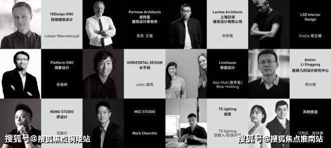 包括外滩华尔道夫酒店的缔造者波特曼建筑设计事务所、来自中国香港的先锋设计机构10Design和Platform,参与设计上海新天地的日清建筑设计,擅长室内空间设计的LSDInteriorDesign、水平线、Linehouse、NONGSTUDIO以及设计外滩建筑群灯光照明的TSlighting等.