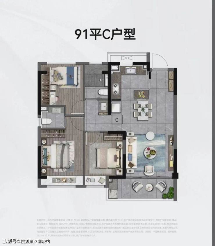 建筑面积约100㎡样板间实拍示意图