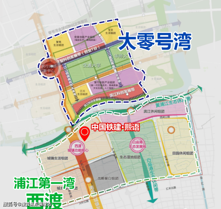 西渡,不仅北面紧邻上海南部科创中心“大零号湾”,而且向东更是直接被纳入另一个上海市级的战略发展地区重磅规划——“三水交汇之地” 。