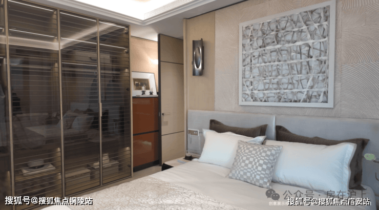 主卧套房面宽约4.8米,采用酒店式配置,配备独立卫浴与超大飘窗,尺度与舒适度俱佳.