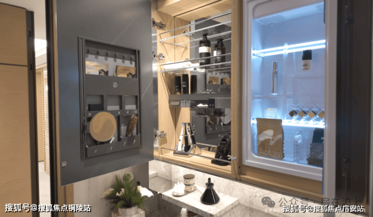 主卫空间更是升级为私人美学沙龙,配备科勒维C美研龙头,具备过滤余氯与微气泡洁面功能;奥普光子嫩肤浴霸让沐浴同时兼具护肤效果.再结合美妆冰箱与镜箱,共同构成独特的“美颜四件套”,悉心呵护日常仪容.