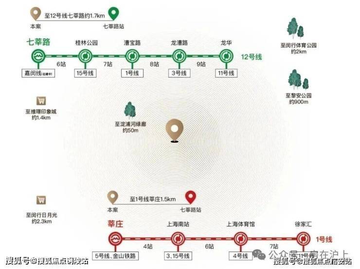 商业方面,离项目最近的商业是12号线七莘路站地铁上盖综合体维璟印象城,直线距离仅相距约1.4公里