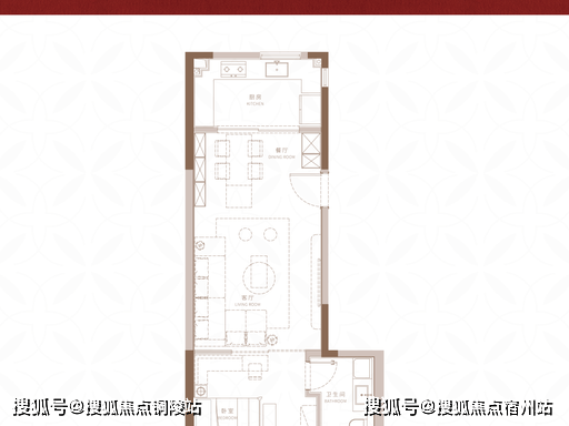 90㎡一房两厅一卫 :全明通透,客餐厅一体化设计,南向落地窗,采光视野极佳,适合单身贵族或双人世界。