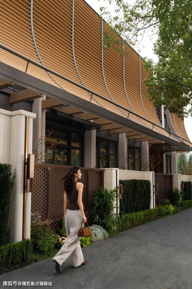 四重高定归家礼序,约350米长4米高归家华墙,约70米疏朗尺度门庭,营造步入式尊贵感;以全球稀有贝金米黄石材与彩釉透光云石冠顶,辅以铝板流线线条打造同频世界审美的建筑立面。
