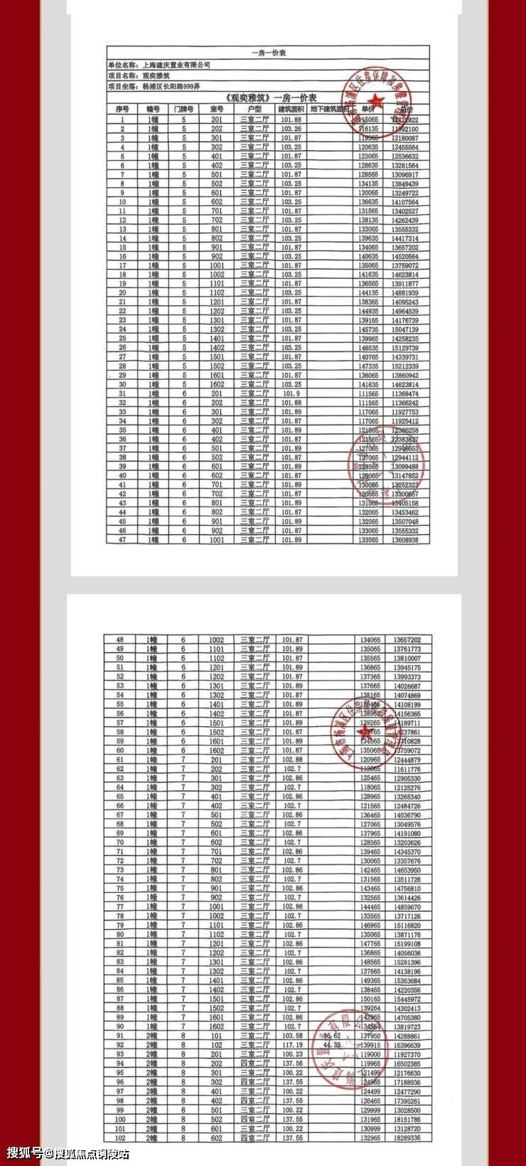 一房一价表