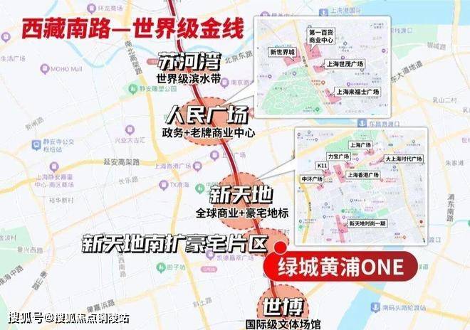 项目毗邻的西藏南路,官方定位"复合功能发展轴"。我认为不仅是黄浦的中轴,更是一条世界级金线,既是豪宅金线,又是商业商务金线: