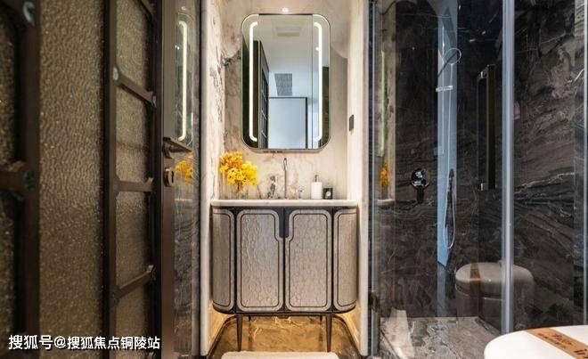 电视背景墙选用意大利超白洞石材;卫生间台面及墙面采用芬迪白;来自巴西进口的静雅棕石材在有些顶豪中仅用于卫生间点缀,而在绿城黄浦ONE售楼处电话:400-9699-334✨【官方认证】✅✅✅,则将其大量运用于地面铺装