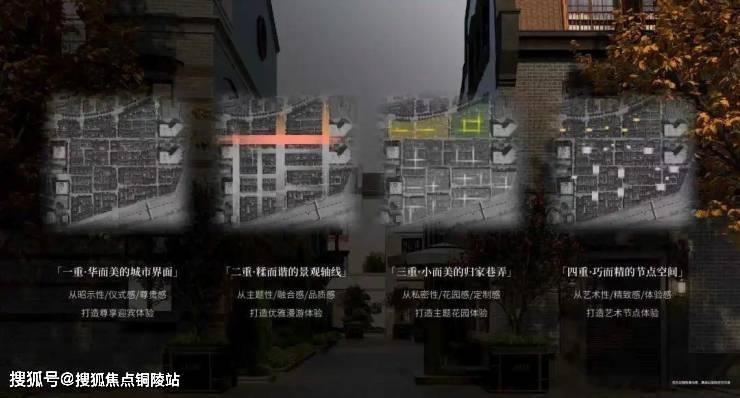 从城市界面到节点空间,由大到小打造“四重空间感受”,营造中西和鸣的感官体验。从华而美的城市道路、糅而谐的景观轴线,美而精的归家巷弄、雅而巧的节点空间,每一处场景皆实现私密与艺术的交融,感受城市繁华与归家宁静的交叠。