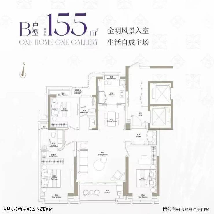 近全飘窗设计,扩展了生活的尺度感;主卧豪华套房设计,兼顾私密性与居住舒适度!