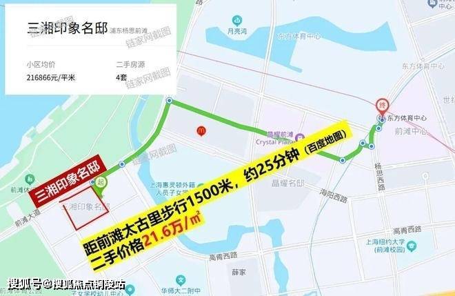 从前滩九宫格走到前滩太古里需要足足25分钟。而前滩九宫格的二手豪宅价格高达21万+(今年2月链家成交的一套三湘印象名邸低区单价17万+)。
