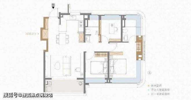 在不到90㎡的建面实现3房一步到位,项目户型最强的S墙、全飘窗以及科学的收纳全都有。